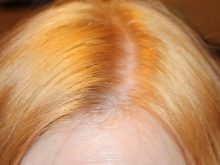 The only drawback of the method is that it is necessary to apply the composition very carefully so that it does not penetrate under the cap, otherwise there will be a bright spot on the head.