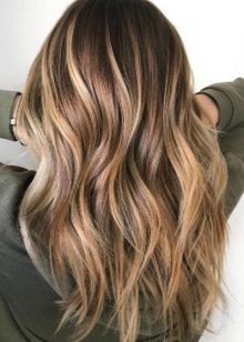 If with blond hair ashy blond looks good, then on chestnut shades should be close to wheat. With this combination, the transition is not very striking, it turns out very attractive, especially for medium hair, if you distribute the bleached curls in the direct parting.