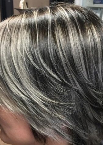 - "Salt and pepper". This color implies a very smooth transition from light gray to black. This technique is ideal for women who have more than 40% gray hair. Actually, it is the only one, if we talk about highlighting. Between the stylish strands of natural gray becomes completely invisible, this method can also be used by girls who have locks colored ashy blond.