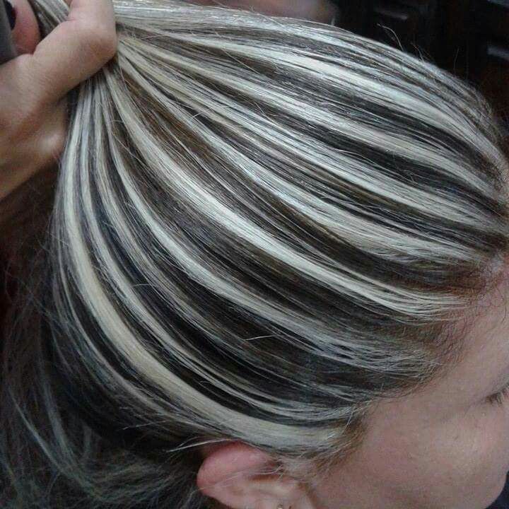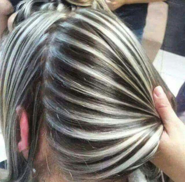 Can do staining parallel to the parting on the center of the head. This is a suitable option for women with a lot of white hair that you want to hide. Strands take thin, but with a uniform distribution, the result is simply stunning. Moreover, such a painting for a long time does not require correction, however, it is more suitable for women with light brown hair.