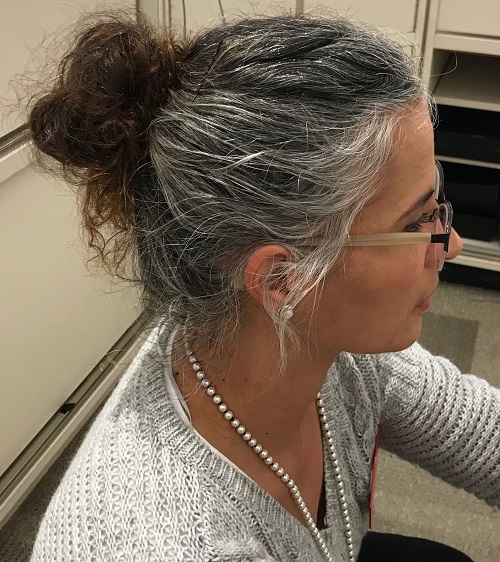 - Foil. One of the most popular ways to make highlights on gray hair. When using this technique does not interfere with the review, you can evenly apply paint, and you can see how long to paint. The composition does not spread and does not fall on the scalp.