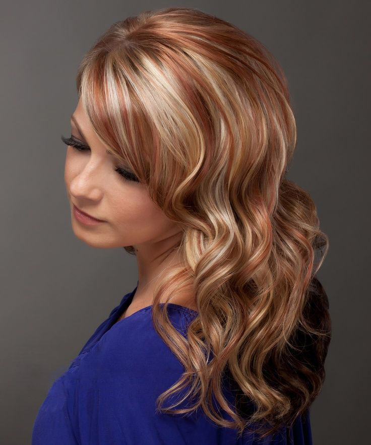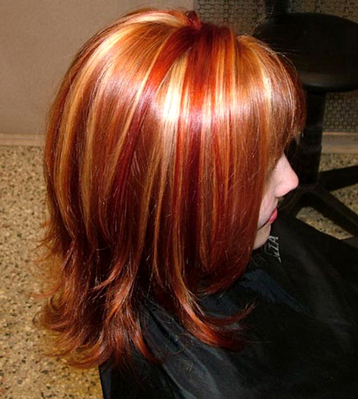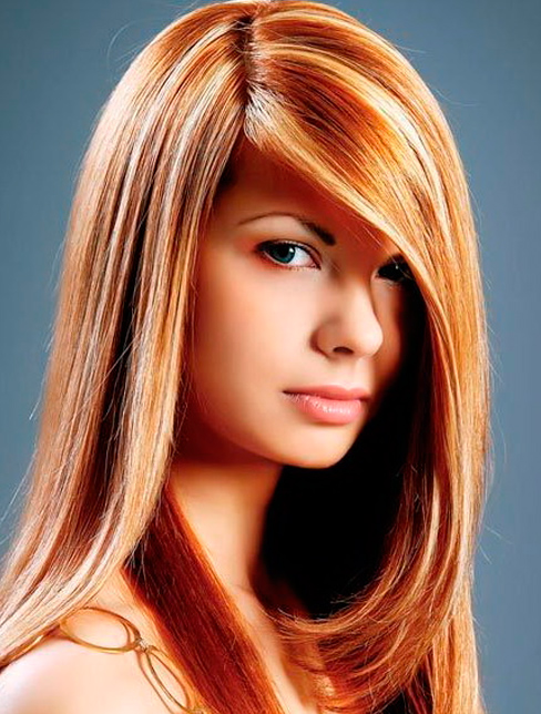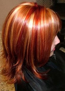 - Blondes who want to give their appearance more brightness, it is recommended to dye their hair in shades of red. This will drastically change your appearance, turning you into a fiery beauty. In the red color there are many tones, ranging from gold and ending with garnet. You can play with them by combining them and creating the illusion of live fire in your hair.