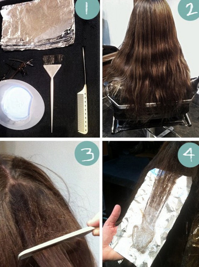 On the hair of medium length, they no longer use the obsolete way “through the cap”, since the curls longer than 10 centimeters can simply become entangled when drawn out, with the result that the coloring will turn out to be uneven and ugly. Therefore, to perform the highlighting at home, purchase a special cosmetic foil in a specialized store.