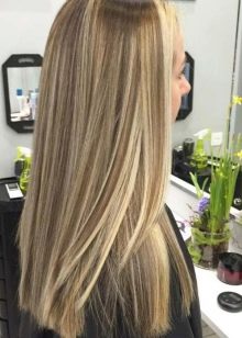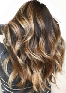 If a girl has natural wavy curls, then the technique of creating glare looks spectacular., every time you move, different shades will appear. On straight long hair, try highlighting a balazezh or shatush. The only minus highlighting on long hair is the cost. Paint will go a lot, but the result will surpass itself. Coloring is advised to do in the cabin, as at home you can get an undesirable effect. The process is also quite laborious and time consuming, it can take about 4 hours. In order to speed up the procedure, many professionals prefer to use the California method of highlighting.
