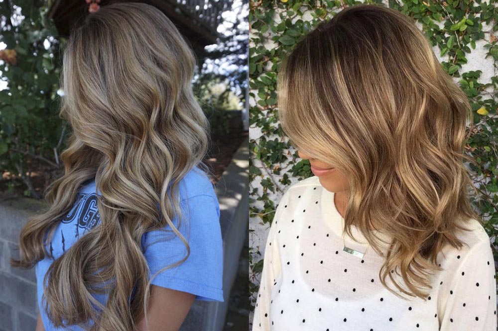 - Dark blonde beauty fit light, red or gold locks, using the technique of balayazh and shatush.
