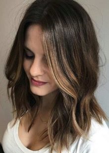 Owners of dark hair often want to transform their hairstyle, without changing their main hair color. To realize such goals, today we can resort to modern variants of partial coloring of curls. Among the techniques used for brunettes, stylists offer highlighting options, which will be especially relevant to look on medium-length hair.