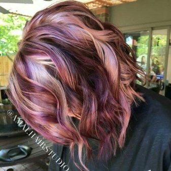 As a result of such highlighting, a visual volume is created on the hair due to the use of from 3 to 5 different shades of paint. There are very bold and fashionable options for dyeing dark hair in mauve or mauve shades. However, the American type of staining is also performed in more calm colors.