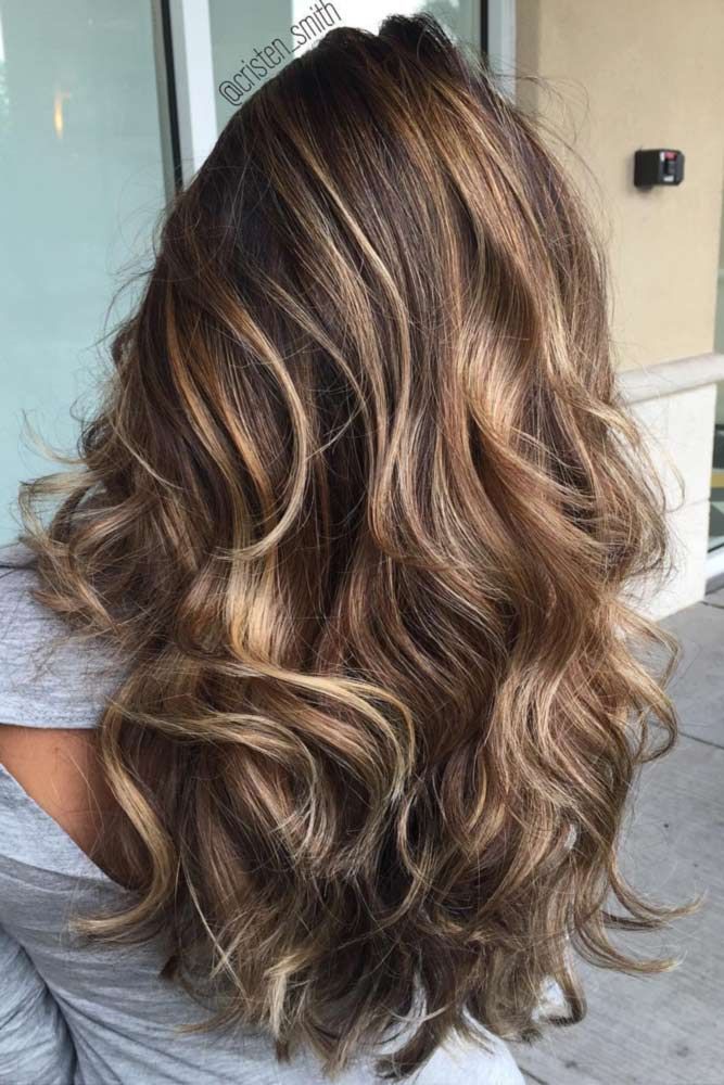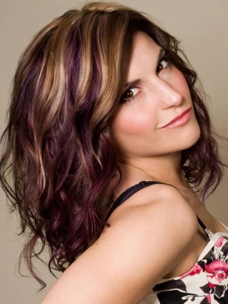 In addition to the usual contrast of light and dark, highlighting chestnut curls can be done with the inclusion of eggplant color. The result of the work will be an interesting combination of several colors that will correspond to fashion trends, as well as add brightness and light to the image.