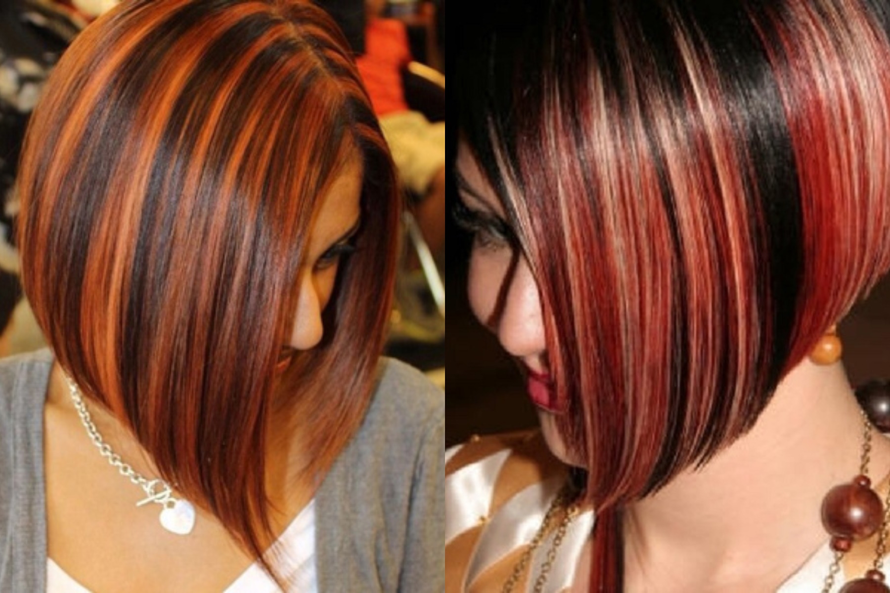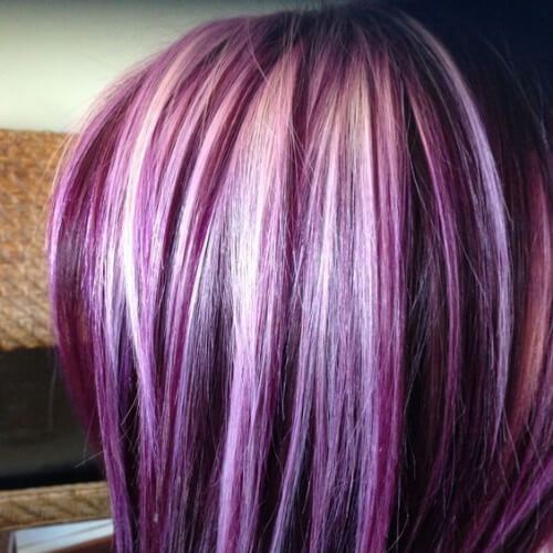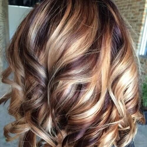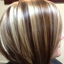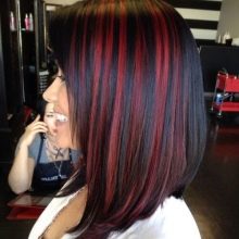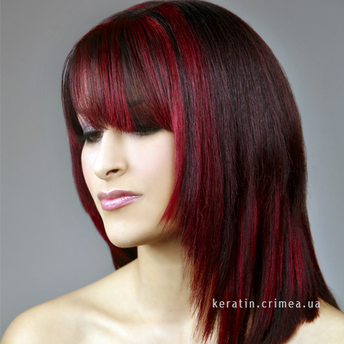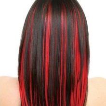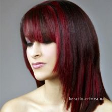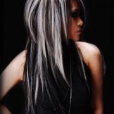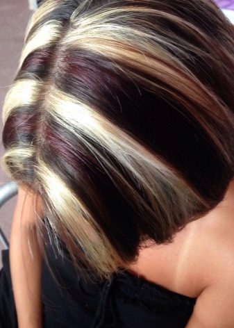In the past year, this kind of coloring was a real fad. Initially, this coloring technique imitated dark curls on light-colored hair. A little later, dark curls began to paint with light shades. The only difference from the classical mode of highlighting is that color transition is made bright and noticeable. When dyeing dark and black hair, blond dye is often used, but at the same time brunettes choose bright and poisonous shades, for example, eggplant or red.