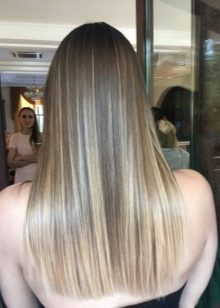 - Beautiful variation of brondirovaniya. Hair becomes light and airy. Dark hair of the root zone smoothly flows into the bright shades of the tips. And there is no difference between the length of the curls, be it short or long strands.