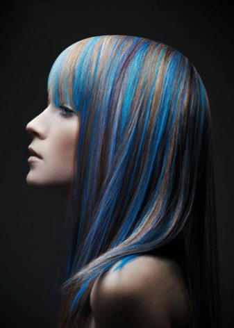 This type of highlighting is very similar to the standard method of dyeing individual curls. And yet there is a significant difference. If in the procedure of standard highlighting shades are applied, approximately corresponding to the natural hair color, then Coloring requires the use of several bright tones, contrasting with a dark color. The classic mode of highlighting does not always require additional toning of the straightened strands, but after coloring the hair, it is necessary to additionally dye it.