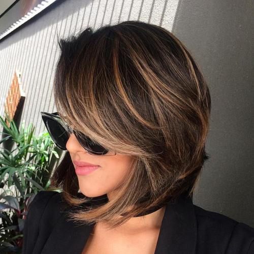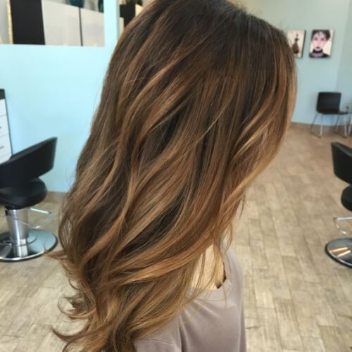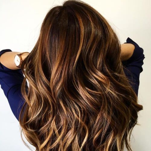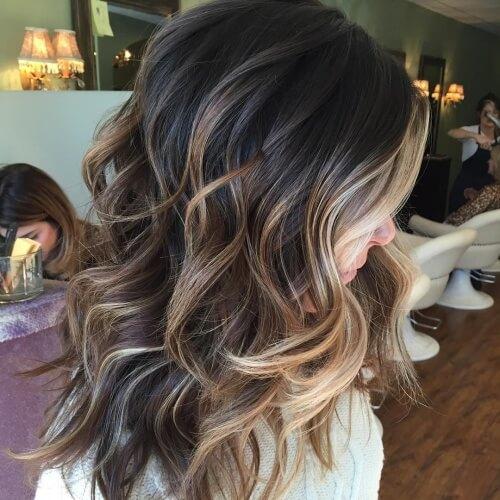 Owners of rich dark hair perfect combination with a copper shade, as well as cognac or platinum. Very effectively on dark hair the color ocher or gold looks. Emphasizing their lightness, the girls use wheat paint color.