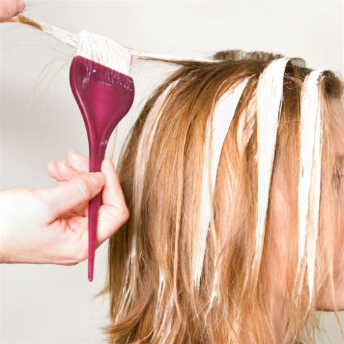 - Use a brush to apply the brightening compound over the hair. Movement should occur from tip to edge.