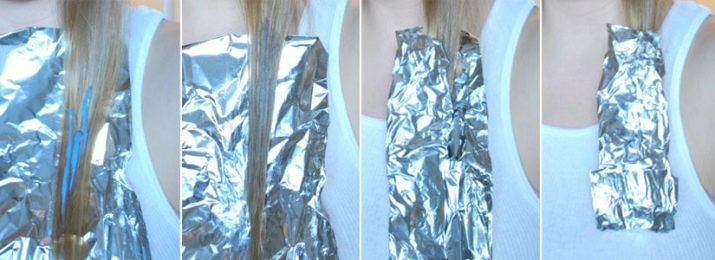 - It is impossible to remove all the foil at once, it is necessary to unfold each individual envelope and wash the colored curl, then proceed to the next.