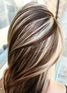Highlighting on long hair is performed using two contrasting colors, that is, strands are selected for dyeing in white and dark color.