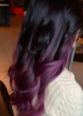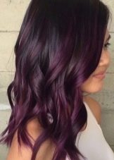 - Violet highlighting is a bold decision for daring ladies who like to attract attention. This can be a spectacular gradient with a transition from a dark top to a bright bottom of the head of hair, or a discreet dark purple locks in black curls.
