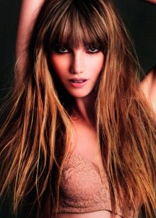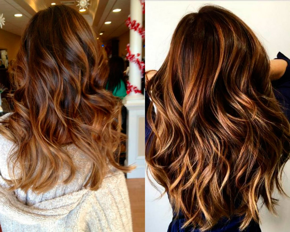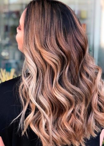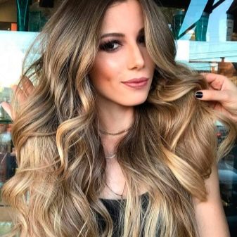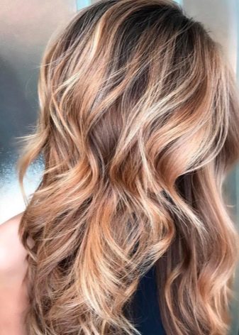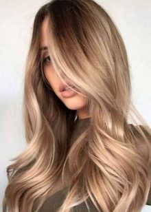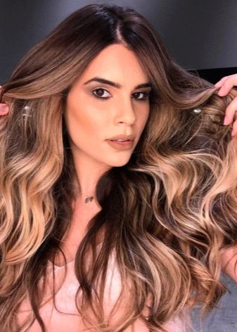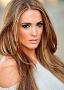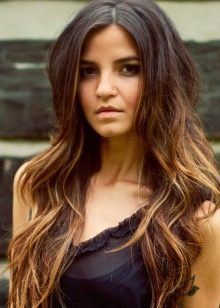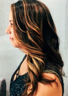 - Luxurious on long wavy or straight hair looks highlighting, made with the use of one or more shades of brown. For example, it can be a gentle chocolate backlash.