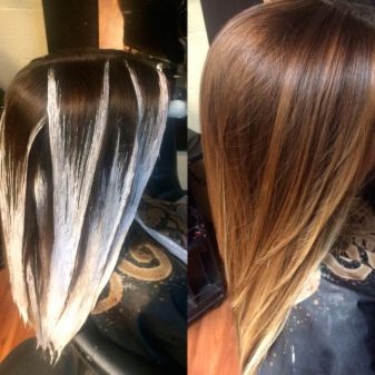 This type of painting differs from the classical solution in that it uses paints that are a couple of tones lighter than the base hair color. Approximate scales can be applied more. In this way, a multi-tone, flashing effect is formed, which will not leave the woman without attention of others.