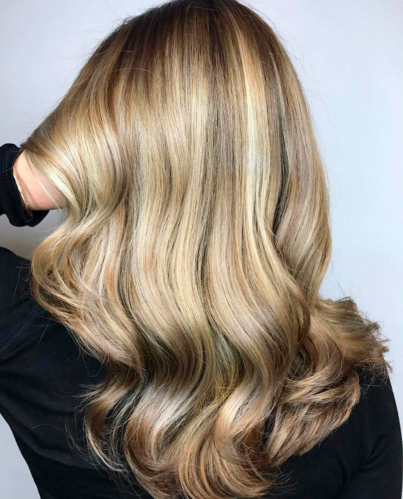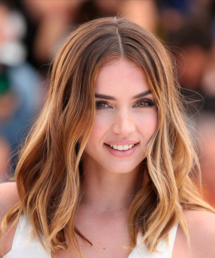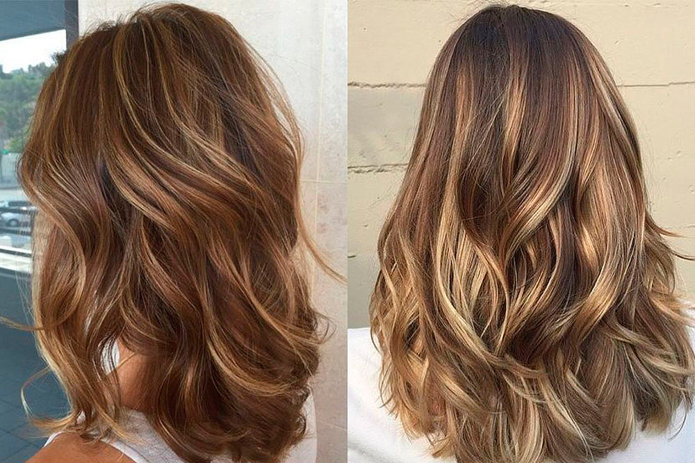 - Ladies with a different color type “summer” (having a peach skin, light brown hair and eyes of any color) are recommended to choose shades with golden notes for classical highlighting. For example, it can be caramel, wheat tones or golden walnut.