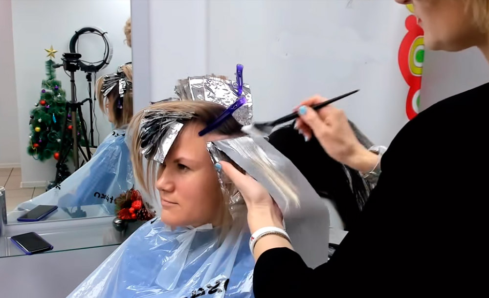 As is known, most types of highlighting involve the use of foil, but in the case of the described painting there is no purpose to make strands sharply contrasting with each other, so the whole procedure is carried out in fresh air. Neither foil, nor plastic bags will not be needed here.
