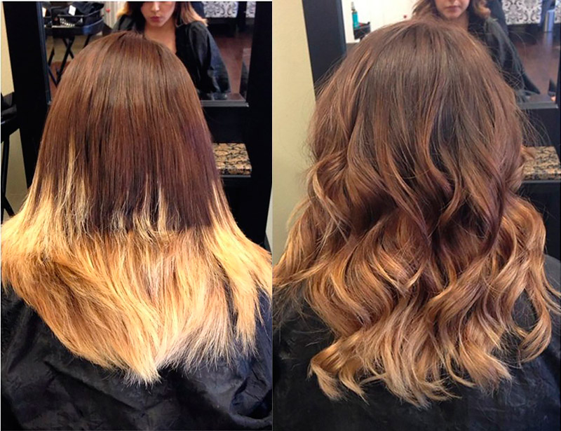 - The color here is stretched vertically, due to which the hair becomes visually more luxuriant and voluminous.