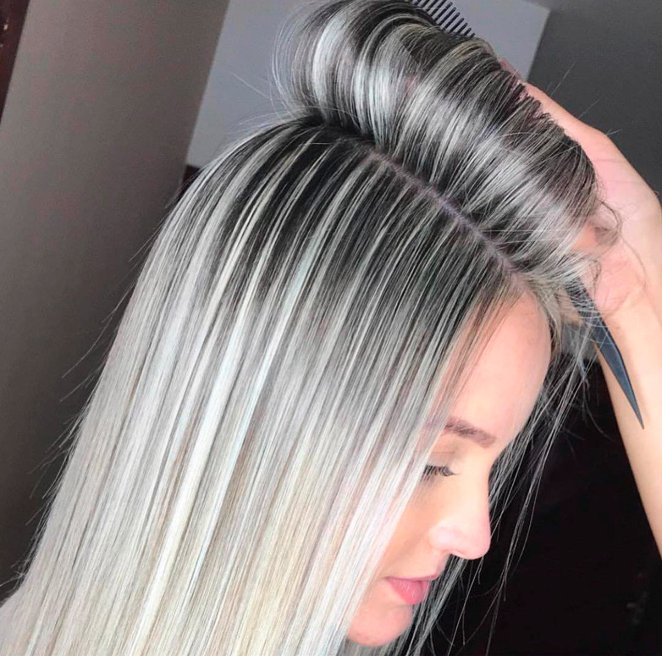 Highlighting with the use of black and ashy strands, smoothly turning into a dark crown, it looks just superb and trendy. The length of the order can be any, as well as styling - the hair can be straightened or curled.