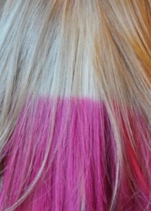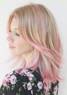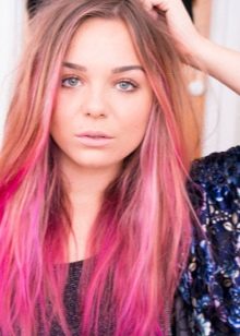 The ebb may consist not only in the difference of pink flowers, but also in their lightening. For example, at the roots of the hair, the color can be saturated pink, and down to a smooth transition to a slightly lighter pink, or vice versa. The effect you want to get depends only on your choice.