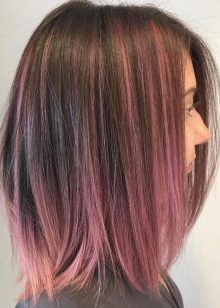 Coloring strands in pink fits as for owners of short or medium hair, and for those who have long curls. Many believe that pink is the color exclusively for young girls, but it is not. With a properly selected shade of pink, it will also look harmoniously and naturally if you are painted in a blonde or under a brown-haired one. An important aspect is that highlighting is not suitable for those who have brittle or dry hair. It can aggravate the situation and greatly affect the health of hair in general.