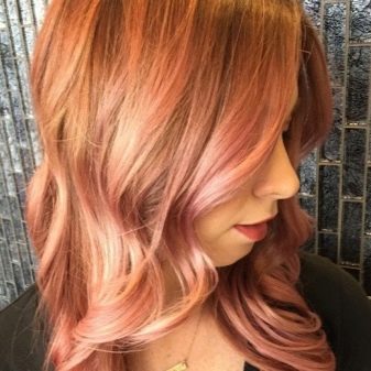 - On the redhead. Ginger girls should be careful about choosing a shade. The best option would be to choose a tone that is close or not very different from the main hair color. It can be pink mixed with strawberry, coral, red, powdery, caramel or golden hues.