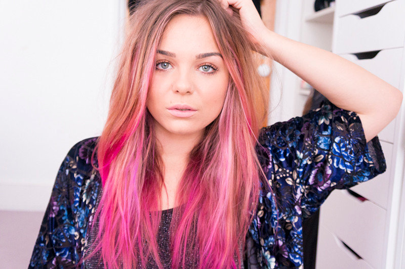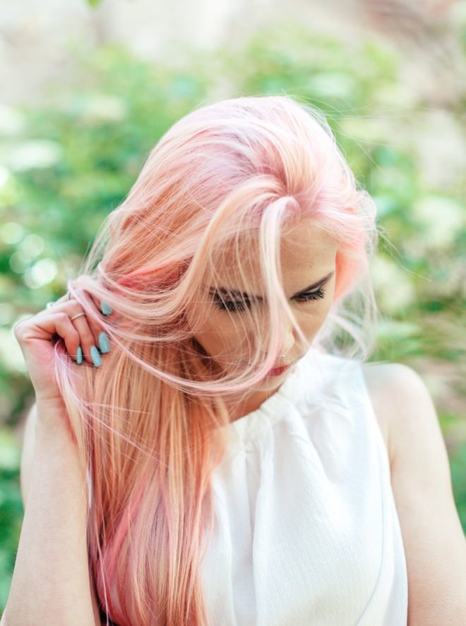 Tinted pink paint Apply to dried hair without oxidizing agents. It should go continuously along the entire length of the strand, you can paint the space at the roots. So with further growth the transition between natural hair and pink will be invisible. Keep the paint also in foil for 20-30 minutes. Coloring tools from different manufacturers keep a different amount of time.