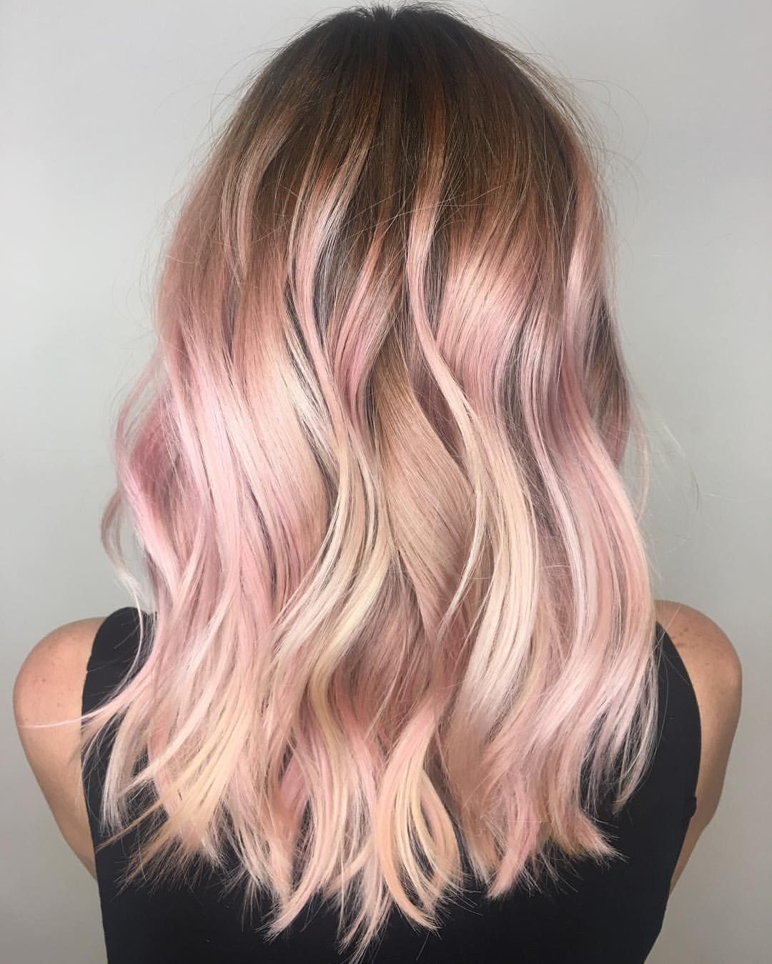 - On the blond. Blonde girls hairdressers offer neutral warm or cold pink, the color of pink terracotta. In most cases, girls with light brown hair prefer light, delicate and soft shades.