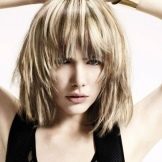 Separately, stylists identify ways to color the bangs when highlighting. They depend on which method is chosen for the total weight of the hair and the structure of the strands themselves. Straight and thick bangs will be good in American clarification. Ragged, graded, thin bangs - a great background for Brazilian and Venetian. In general, hairdressers agree that highlighting the fringe is necessary.But keep in mind that she bangs grows faster than a haircut, so you will have to adjust it more often.