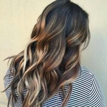 Beautiful highlights on dark hair can be very natural. To do this, it suffices to choose natural shades that match the temperature to the natural range.