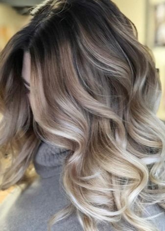 Ombre implies the creation of a regrowth effect. That is, the strands are colored in such a way that they create a smooth transition from dark roots to bright ends. Several different shades are used.This coloring will be a salvation for girls with dark curls, as they do not affect the roots, while maintaining the integrity of the hair structure.