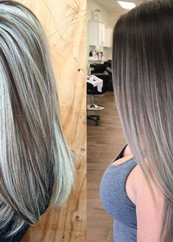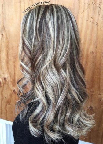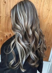 Highlighting on natural brown hair and burning brunettes is quite difficult to carry out and give them the effect of natural or glare overflow. The selected tone will still be contrasted with the natural hair color. An exception can be called a dark blond, for it is chosen silver or gray, almost "mouse" shade.