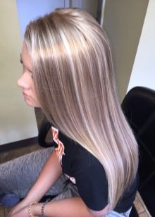 You can choose 1 or several tones at once, the most important thing is the same color spectrum. For dark blond strands, it is easier to choose the desired shade, since almost all light colors will match them. In the best way shades of “blond” color of milk, bright pearl tone, honey shade, all light-brown colors will be combined. You can experiment without fear and make frequent highlighting in combination with various shades of blond.