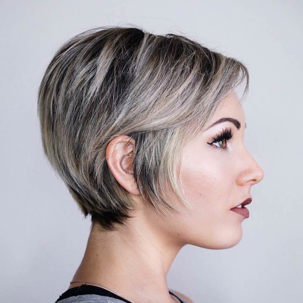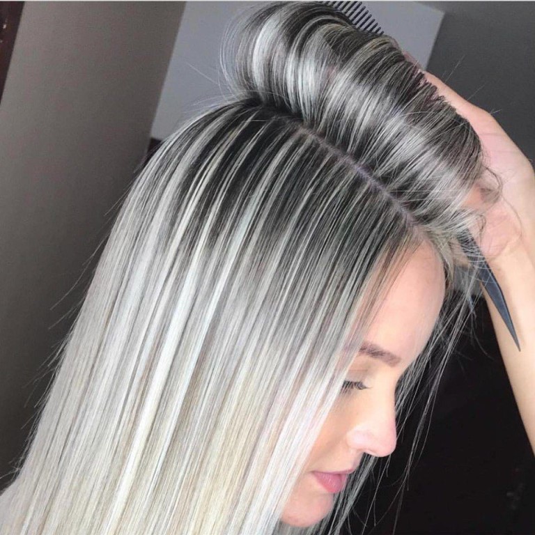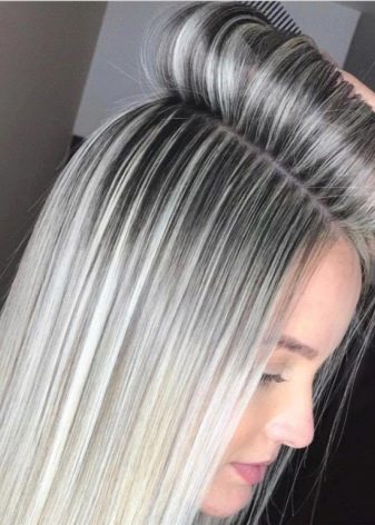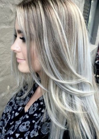 Frequent highlighting will also look beautiful on long curls and on those who prefer short haircuts. To hide gray hair, you can use a very fashionable technique called "salt and pepper." Here, the gradient from white and light gray to black is almost invisible to the eye because of a set of very thin strands.