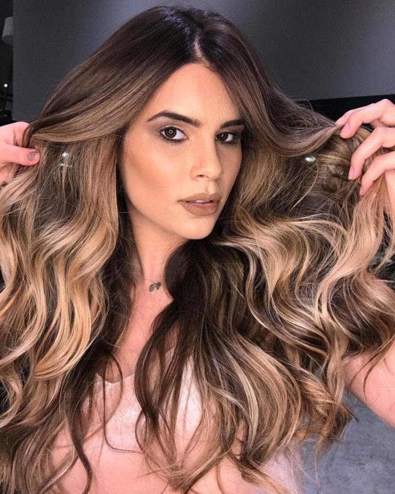 The most suitable for women with a brown tint of curls will be considered such colors as honey and amber, as well as cognac and caramel. For hot brunettes fit all coffee shades, the color of chocolate, bronze, copper, chestnut color.Silver tone or light gray look on black strands effectively, but only if they are beautifully combined with blue or green eyes.