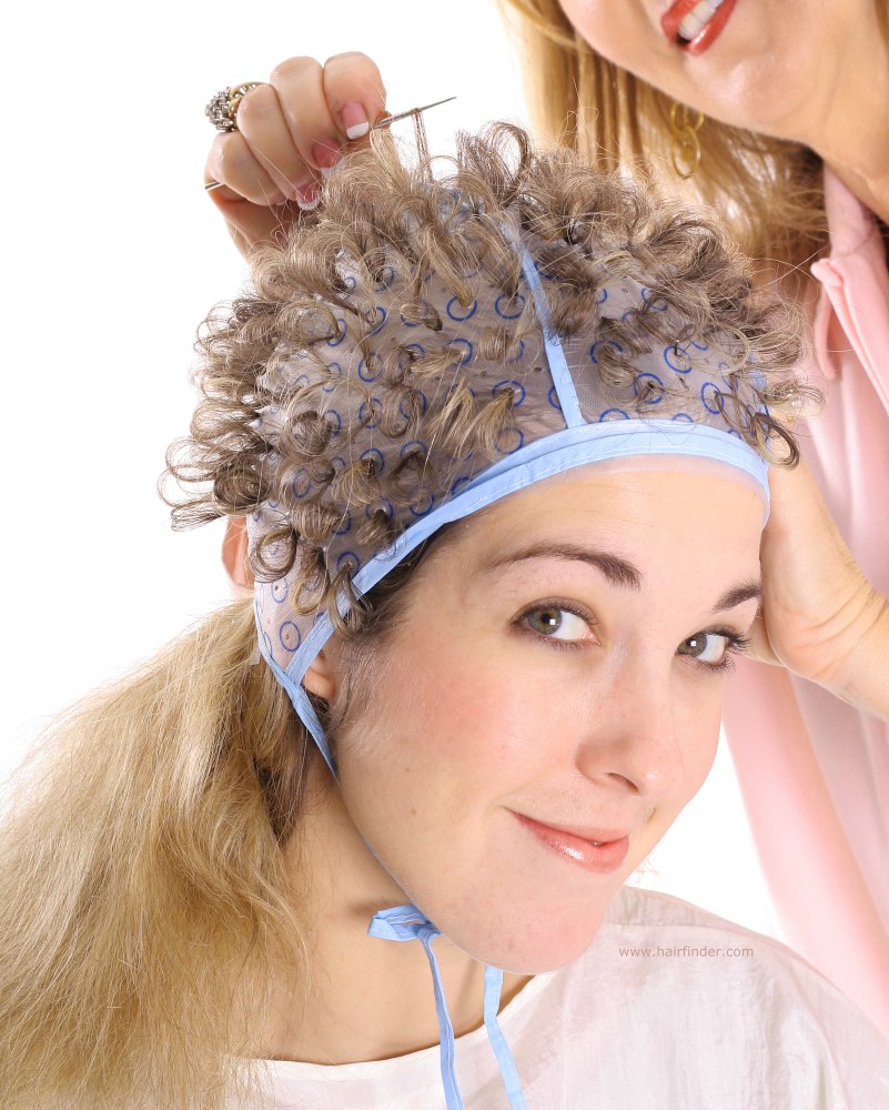 - It is necessary as carefully as possible to comb dry curls. The cap is put on the head and fixed with ties.