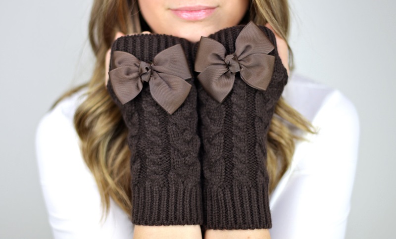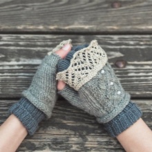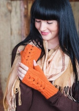Styles externally represent a mix of mitts and ordinary gloves. In addition to the usual products with open fingers, attached to the upper part with fingers or imitating a mitten. It is comfortable in the cold and allows you to simultaneously use the accessory as mitts or gloves (mittens). Products can be voluminous or with openwork motifs.