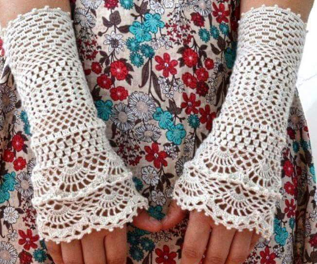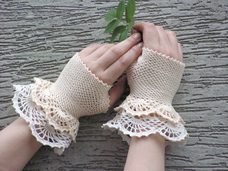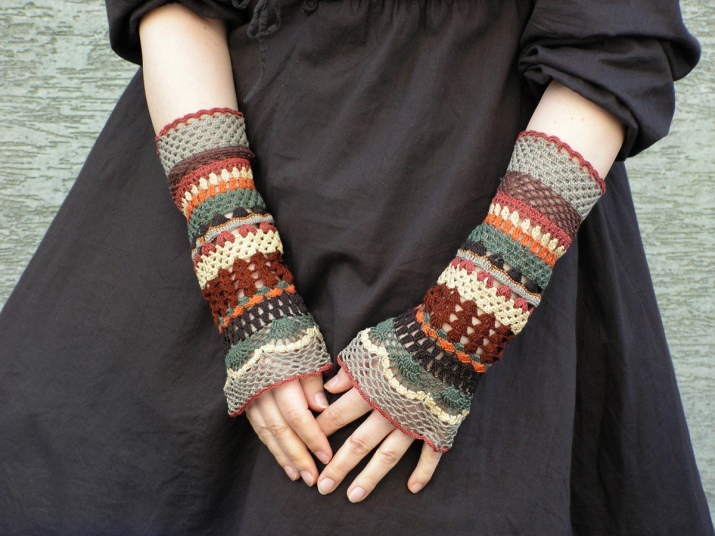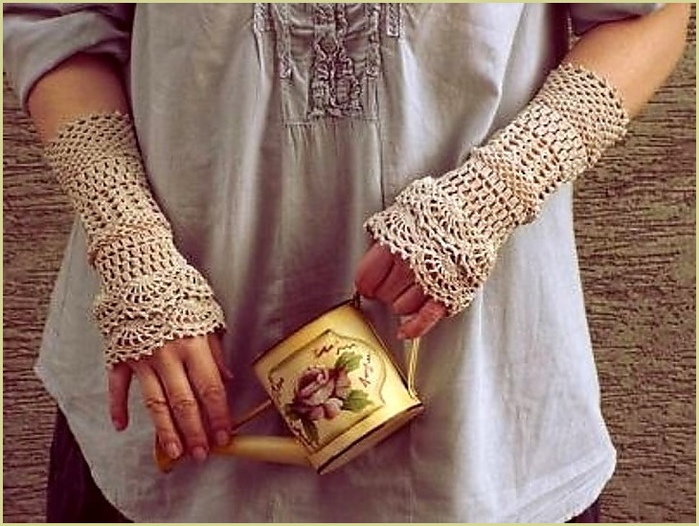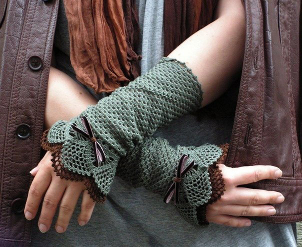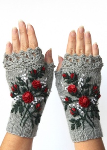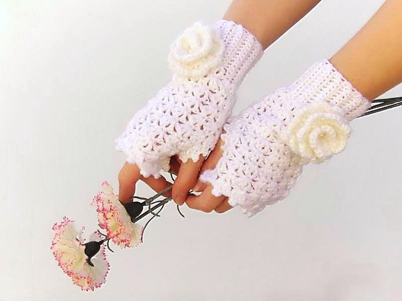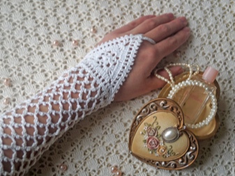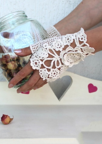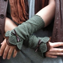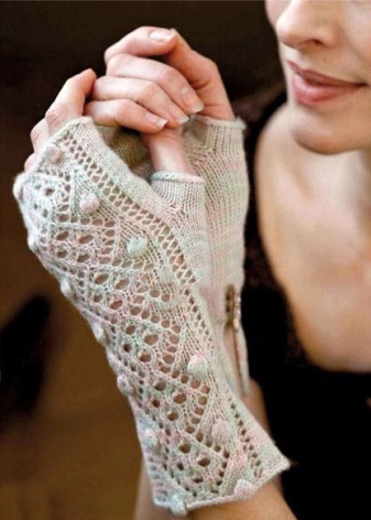 The openwork pattern is considered one of the most popular styles of gloves-mitts. Knitting can be any, performed by the factory or by hand, knitting, crocheting or a combined method (the edge of the canvas is crocheted to form a thin lace).