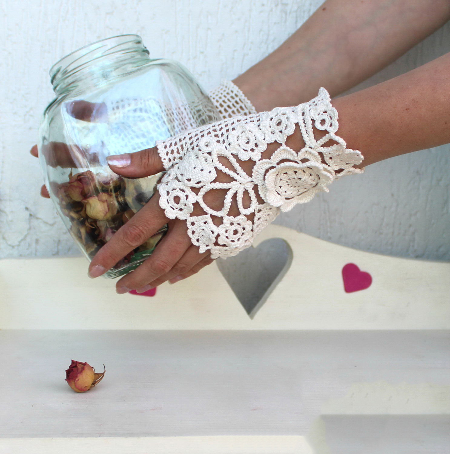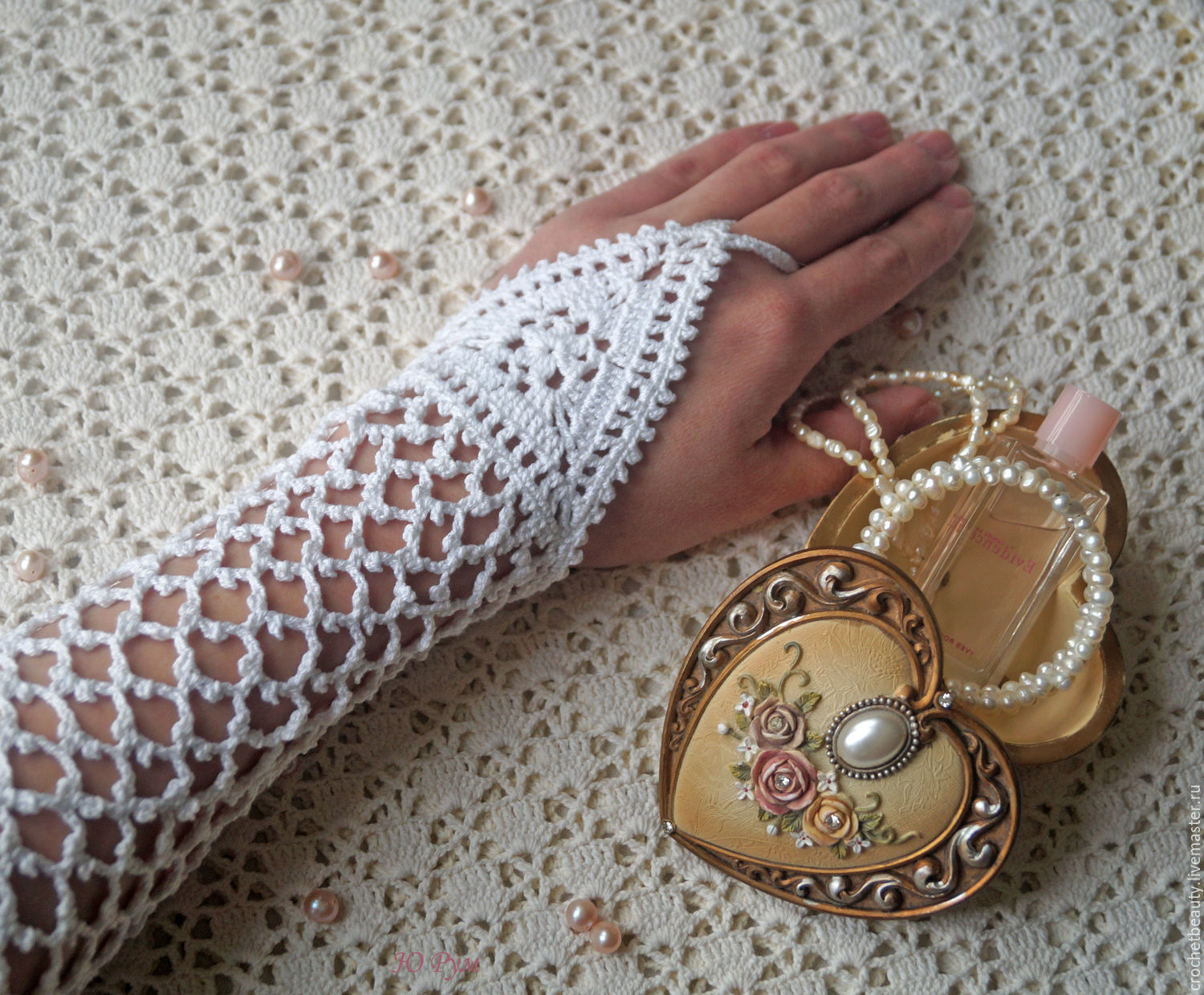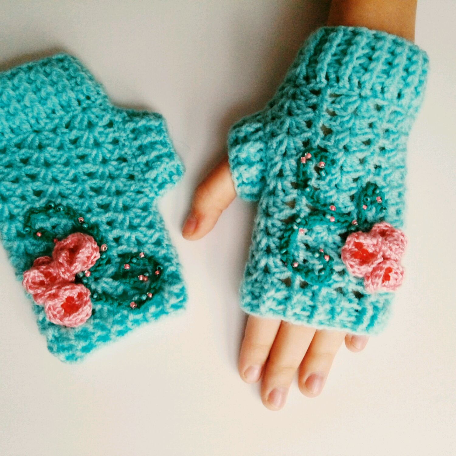 The openwork pattern is considered one of the most popular styles of gloves-mitts. Knitting can be any, performed by the factory or by hand, knitting, crocheting or a combined method (the edge of the canvas is crocheted to form a thin lace).