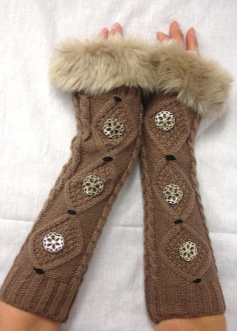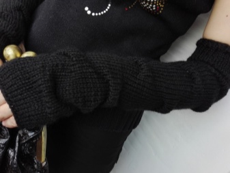 These accessories are longer and can reach the forearm.In cold weather, they replace the sleeves and are perfectly combined with fur vests. Models of thinner fabrics are combined with T-shirts, tops and products without sleeves. In this case, it is appropriate to wear mitts mitts.