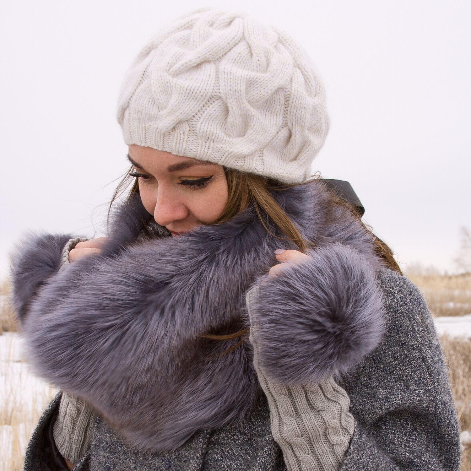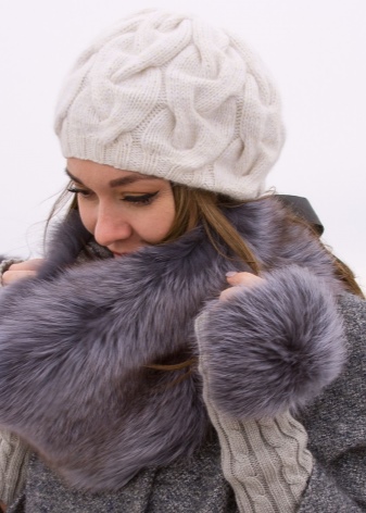 Knitted products are often made of cotton and acrylic. This yarn is soft and pleasant to the touch, it is hygienic and does not irritate the skin of the hands. Often, downy mitts made of animal fur become an ornament of a woman.