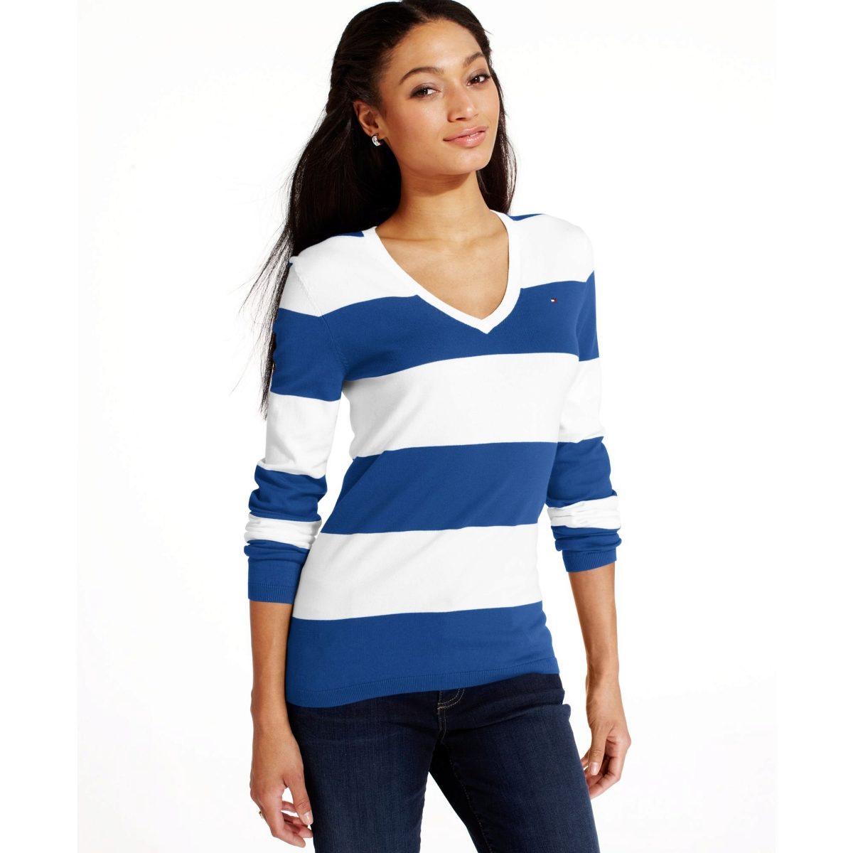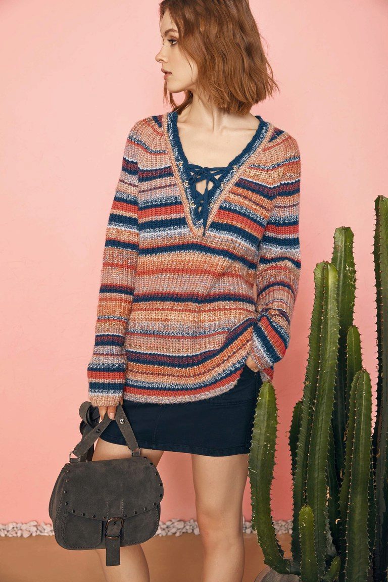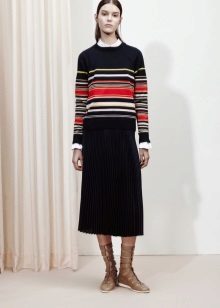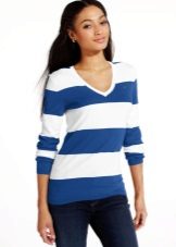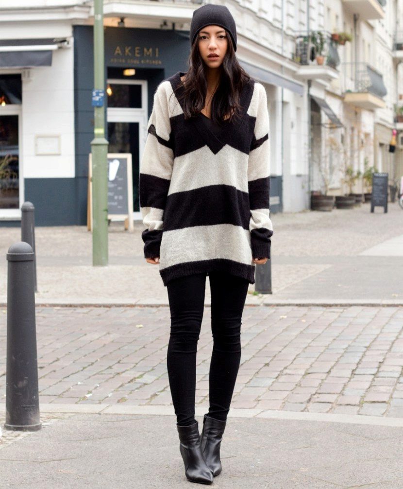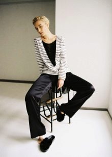 A striped pullover will never go out of fashion, as this pattern always remains relevant. The main thing is to remember how horizontal and vertical lines can visually distort the proportions of a figure.