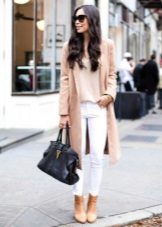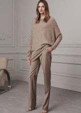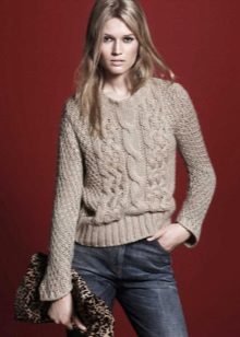 Beige pullover is a popular model in casual style. Lovers to wear discreetly and with taste wear such pullovers with chocolate or burgundy trousers and elegant shoes.