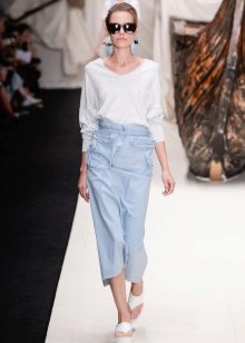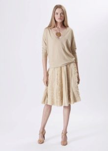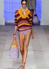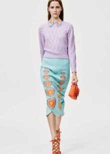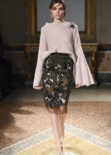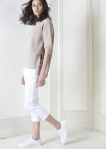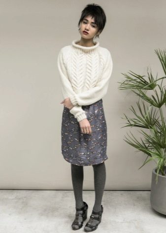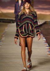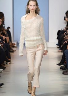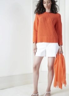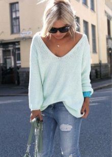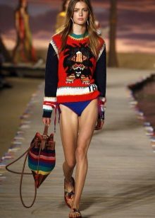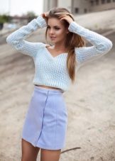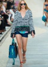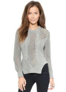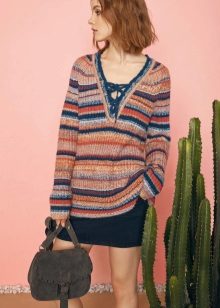 For example, in the spring or summer, a combination of a thin pullover with denim shorts and lightweight shoes would be appropriate. In cool weather, the image can be supplemented with tight tights, and sandals can be replaced with boots or boots. Also, a pullover can be perfectly combined with summer skirts - flirty mini or romantic maxi.