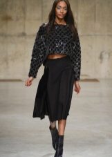 - Short pullovers are very popular now: models that open part of the abdomen are worn with trousers on a high belt, long tops and shirts. Best of all, such pullovers are sitting on pretty slim girls.