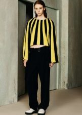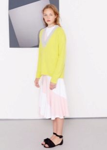 The list of things that can be combined with fashionable pullovers is almost endless: these are bright trousers of different styles, elegant midi skirts, and narrow dresses, as well as a variety of tops, blouses and T-shirts.