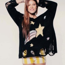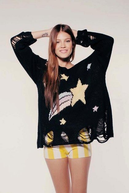 Pullover with a star is a bright thing in everyday style. Stars - big and small, connected, embroidered or glued adorn both male and female models.
